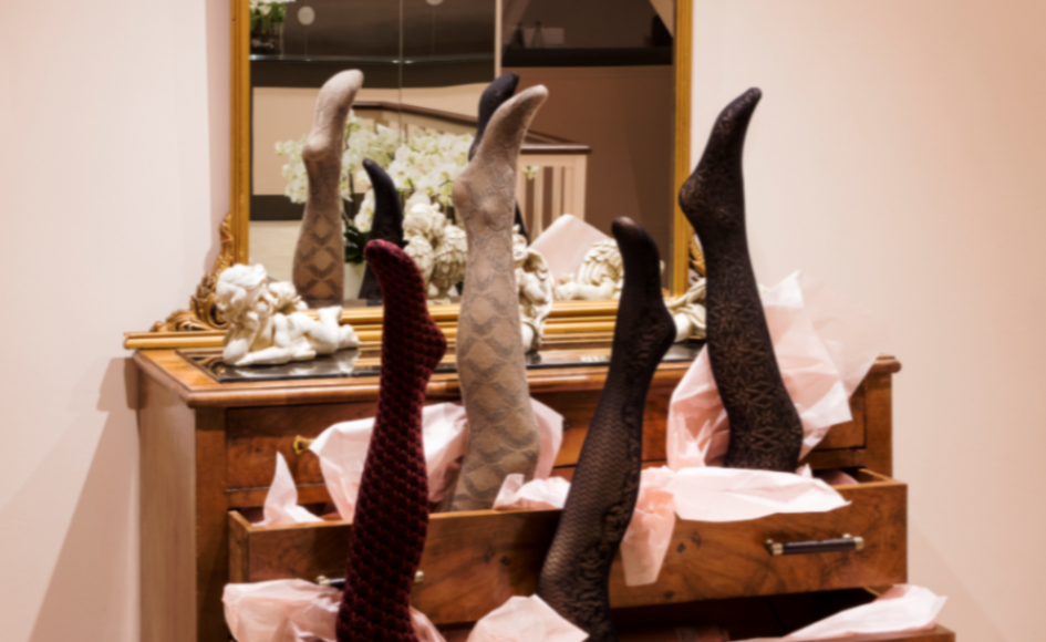 pour être utilisée comme structure d’exposition pour les collants. Bluffant !