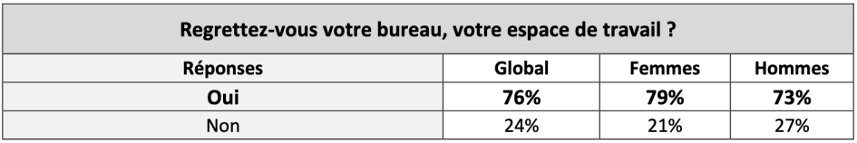 Sans doute que peu de personnes auraient répondu par l'affirmative à cette question en temps normal mais aujourd'hui, plus de 73% des hommes et 79% des femmes avouent regretter leur bureau et leur espace de travail quotidien.
