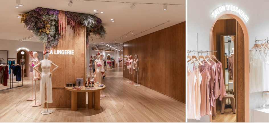 Le réaménagement de l'espace lingerie a introduit de nouveaux espaces de détente et une offre diversifiée, qui se retranscrit par une curation en magasin complétée par une offre plus large, des déclinaisons et des tailles supplémentaires sur le site galerieslafayette.com. Le relais avec le site internet est fait en magasin via les vendeurs afin de commander directement en ligne.