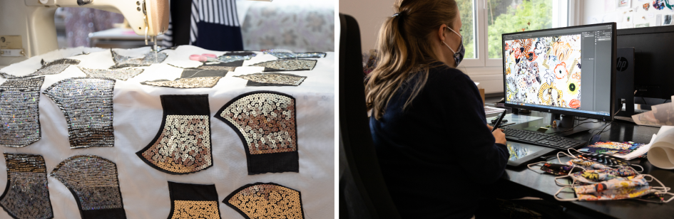 C’est grâce au tissu de qualité élevée d’un fabricant textile de la Vallée du Rhin, Schoeller Textil AG, que les masques ont été réalisés. Haute densité (280dtex) mais respirant à la fois, ce tissu à double couche est hydrophile (c’est-à-dire absorbant l’humidité) à l’intérieur et hydrofuge (qui repousse l’humidité) à l’extérieur. En outre, il se compose à plus de 60% de fibres recyclées et il peut encore être recyclé à la fin de son cycle de vie. Deux autres couches de tissu, interne et externe, en 100% coton, mais également des élastiques et une armature flexible au niveau du nez pour viennent compléter le tout.