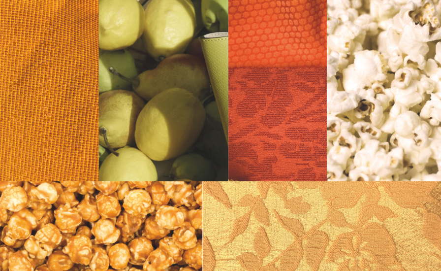 Explosion chromatique des teintes chaudes ambre, miel, melon, orange, popcorn.