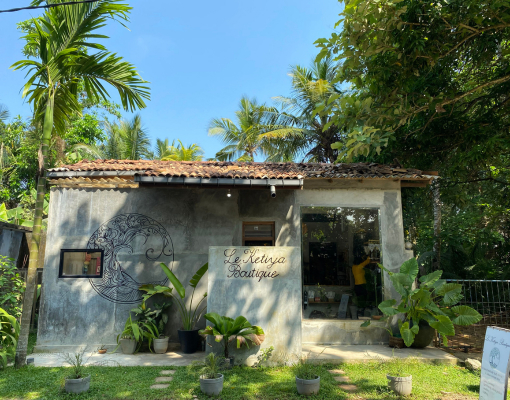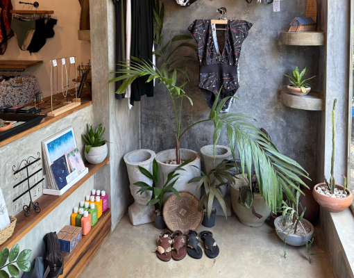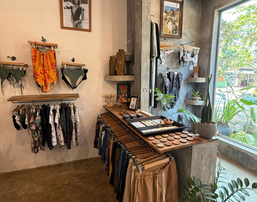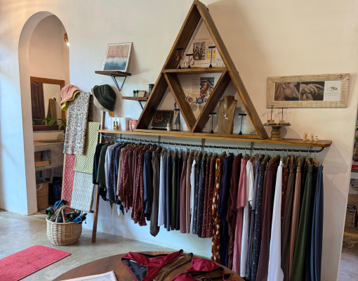 À proximité des cabines d’essayage, un petit salon invite à une pause intemporelle : on y feuillette un livre, déguste un café tout en admirant le jardin, tandis que les singes traversent paisiblement le toit. Plus qu’une simple boutique, Le Ketiya est un refuge, un lieu de rencontre et de partage où chaque visiteur vit une expérience singulière, une histoire, une connexion profonde avec ce petit coin de paradis. Cinq ans après son ouverture la boutique continue de refléter la vision de Gabrielle : un équilibre subtil entre esthétique, éthique et douceur de vivre.