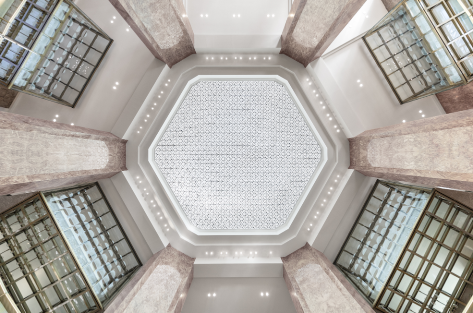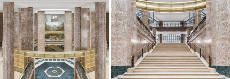 et face à l’avenue. Un deuxième étage mixte vient réinterpréter les codes du luxe et accueille les maisons de luxe emblématiques