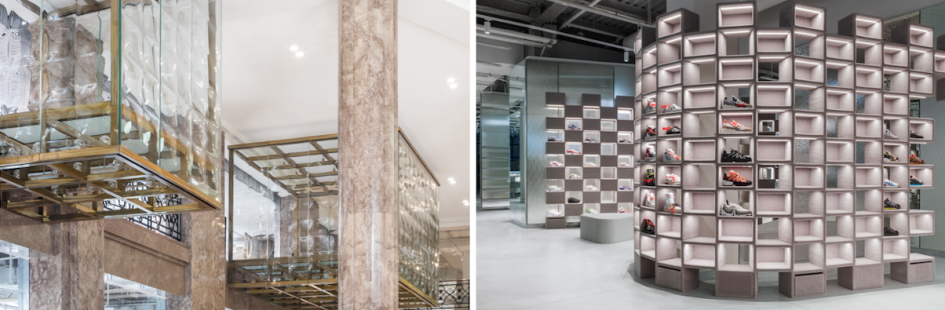 On y retrouve la mode, mais aussi la maroquinerie, les bijoux, une sélection unisexe de sneakers , un Denim Lab, et une offre de design allant de la