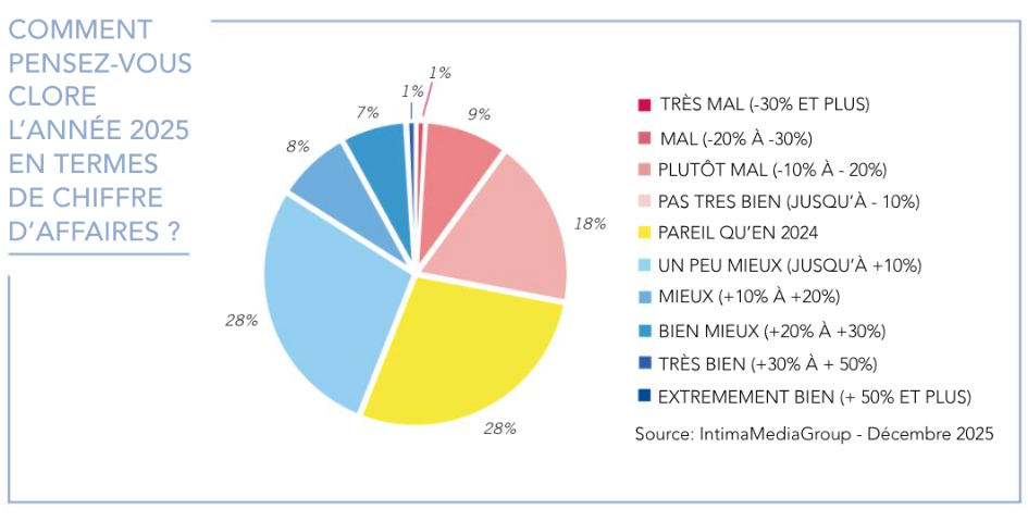 Si le contexte demeure fragile, la résilience du commerce indépendant se confirme : présence accrue sur les réseaux sociaux, opérations en boutique et rénovations des espaces de vente ont dynamisé l’activité de nombreux interviewés qui remarquent également des achats plus réfléchis de la part des clients. En 2025, elles sont 44 % à signaler une augmentation, même modérée, de leur chiffre par rapport à l’année précédente, contre 28 % qui se maintiennent. Le pourcentage de celles qui ont connu une petite baisse passe de 28 % à 18 %, un signe encourageant sachant que cette enquête est réalisée avant les ventes de fin d’année.