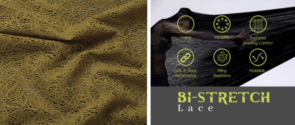 La dentelle bi-stretch est un produit qui a été développé pour répondre aux besoins de confort dans la vie quotidienne moderne et se caractérise à la fois par des aspects techniques d'excellence et élégance esthétique. Voici les caractéristiques et avantages de ce tissu polyvalent :