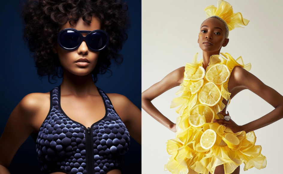 La série « Food Fashion » illustre à merveille cette approche, transformant des aliments en tenues spectaculaires : robe de soirée en bananes pelées, maillot de bain en myrtilles, lingerie en œufs en sucre, veste en framboises et crème fouettée… En détournant la nature par la technologie, Bonny Carrera invente une mode inédite. « La nature est une source d’inspiration infinie. L’IA m’aide à en extraire des formes abstraites et à les traduire en silhouettes inédites », explique-t-il.