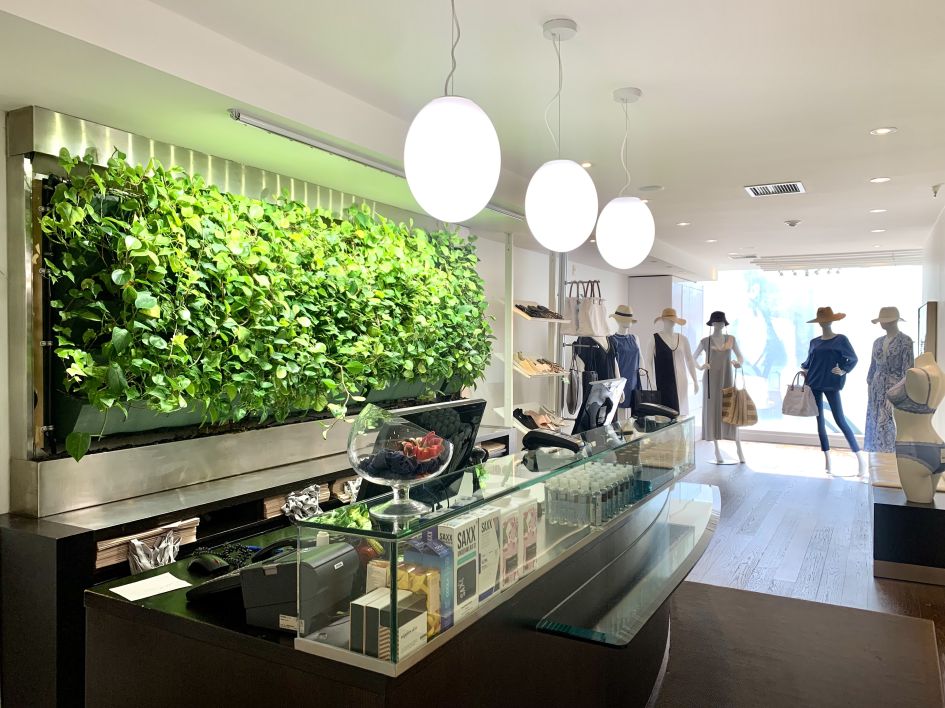 ❤On aime le look neutre de type boudoir des cabines d'essayage et la jungle intérieure de la boutique de maillots de bain.