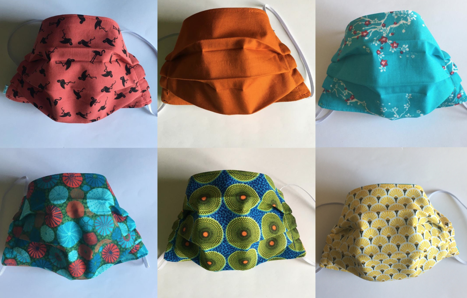 Les chutes de tissu des élégants sacs Saku Saku s’associent à des matériaux récupérés sur des vêtements mis de côté bien trop tôt donnent vie à des masques en tissu de type chirurgical à souflet.