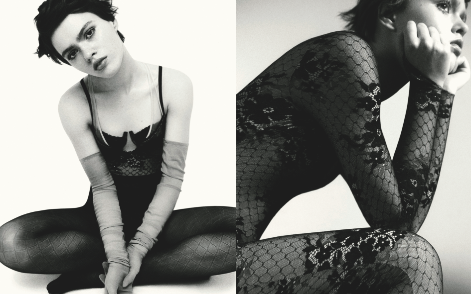 La capsule propose une sélection parfaite d'essentiels au design exquis : des combinaisons, des robes et des body rehaussés de motifs en dentelle ou de coupes asymétriques contrastées en matière certifiée 100 % biodégradable, chacun mettant en valeur la silhouette. Les collants, les soutiens-gorge et les culottes sont très distinctifs, évocateurs et subtils. Une option legging, jupe et combinaison en cuir végan souple et extensible avec des fonctionnalités sculptantes complètent l'offre.