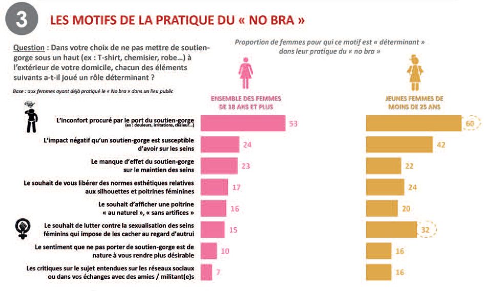 seins (24 %) - ou encore de nature esthétique comme la volonté d'afficher une poitrine sans artifice (16 %)