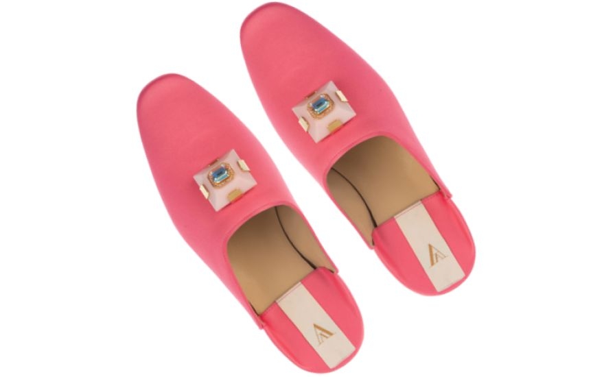 par la maison Saanah dont les slippers néo-romantiques se couvrent de