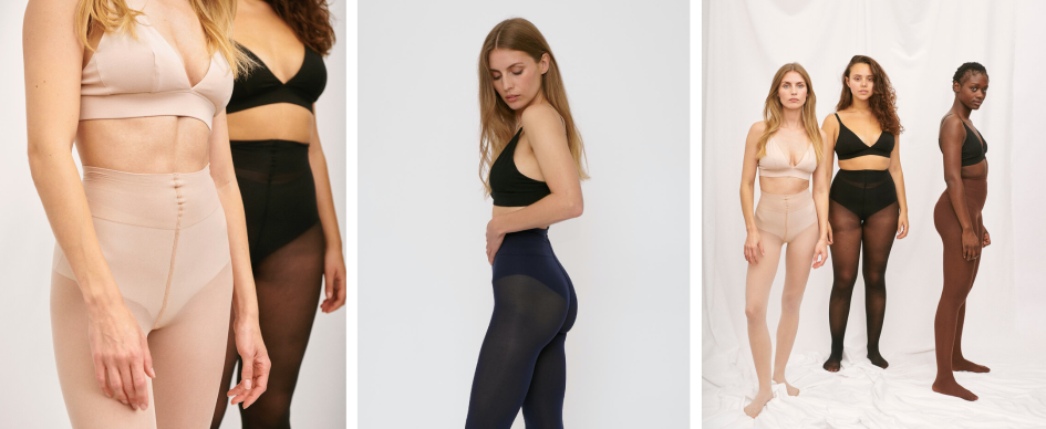 Fabriqués à partir de déchets post-industriels, ces chaussettes et collants particulièrement résistants au fil du temps et des usages sont tricotés en 3D et dotés de renforts au niveau des pointes. Pour les collants, une grande ceinture pour une meilleure tenue et un confort optimal complète le tout. Proposée en 4 coloris (Noir, Chêne, Noix et Navy), la collection est réalisée en nylon recyclé certifié GRS (50% nylon recyclé, 36% nylon et 14 élasthanne). En utilisant ce nylon recyclé, Organic Basics évite ainsi 90% d’émissions de carbone par rapport à l’utilisation d’un nylon vierge. Ces collants sont disponibles en version 20 ou 80 deniers, tandis que les chaussettes sont semi-opaques. Fabriqués entièrement en Italie à partir de matières italiennes, ces modèles sont lavables en machine à 30°C.