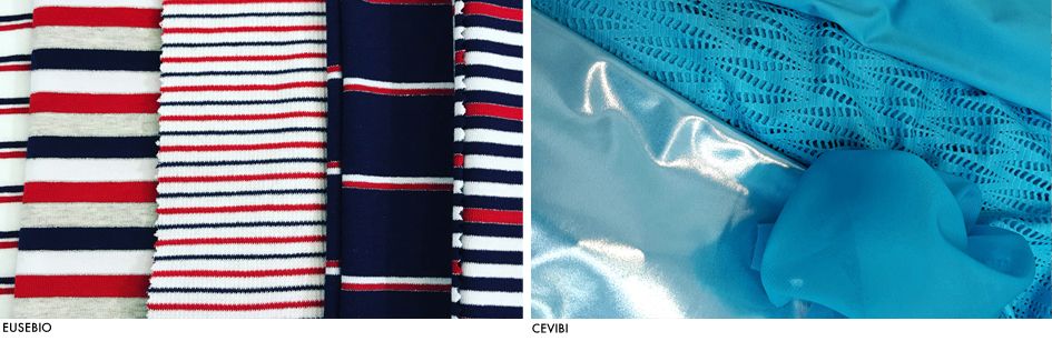 Eusebio présente une offre d’articles dédiée au thème cruise : tissus en maille de coton, nylon et polyester élastiques dans le plus pur style marin.