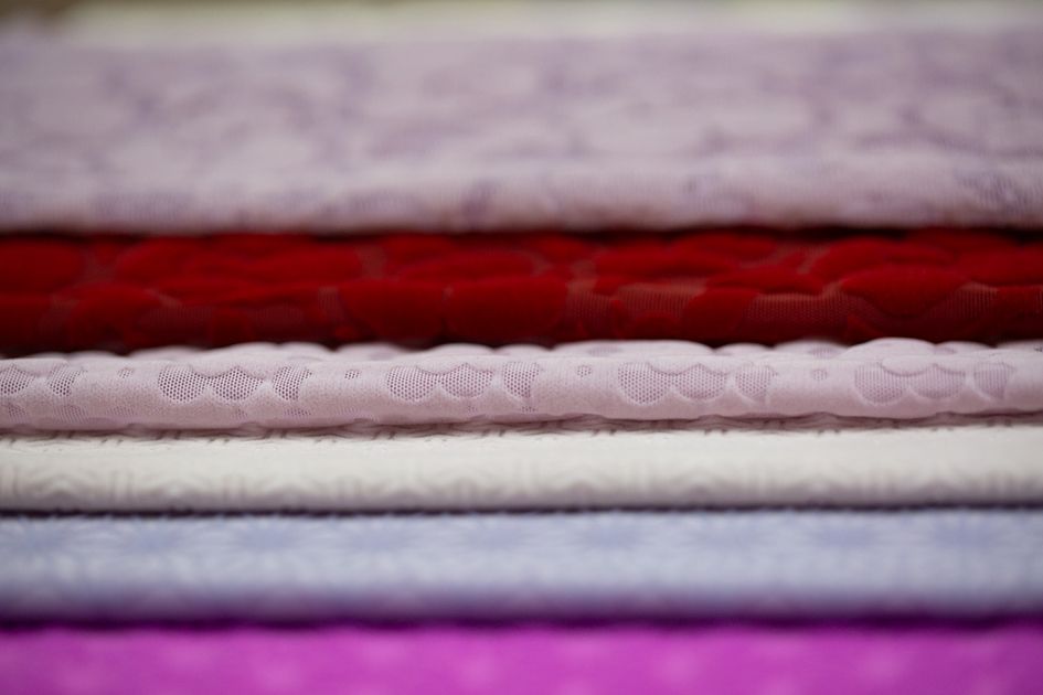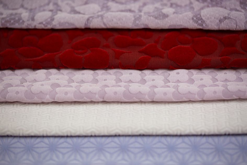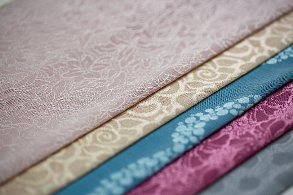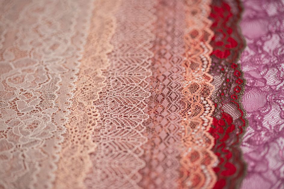 SOPHISTICATED, HIGH BAR JACQUARDTRONIC-MACHINES COMBINED WITH SELECTED YARNS ARE OUR TOOLS TO GENERATE CREATIONS RANGING FROM EDGINGS, GALLOONS TO ALLOVER CONTAINING MIXES OF PA, COTTON, VISCOSE AND ELASTANE