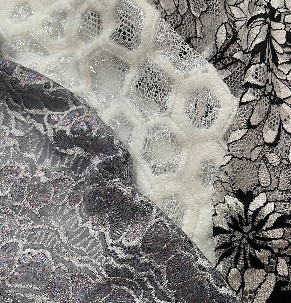 PER L’A/I 23/24 L’OFFERTA DI PIZZI ILUNA REALIZZATI CON FILATI SOSTENIBILI SI ARRICCHISCE CON NUOVI ARTICOLI CHE UTILIZZANO FILO DI COTONE ORGANICO CERTIFICATO GOTS. ULTERIORE NOVITÀ: L’EXPERTISE SUI FILATI PRE-TINTI MATURATA SULLE VISCOSE NELLA FAMIGLIA ULTRA LIGHT SI DECLINA OGGI ANCHE SUL COTONE BIO. NELLA COLLEZIONE MODA, FILATI LUREX DALL’ASPETTO PLASTICO E FLUORESCENTE DONANO NUOVO GLAMOUR AI PIZZI, IN ALTERNATIVA AL CLASSICO EFFETTO METALLIZZATO E BRILLANTE; LA PALETTE DI COLORI LUREX SI AMPLIA POI CON L’AGGIUNTA DI UN FILATO MULTICOLOR DAI BAGLIORI METALLICI.