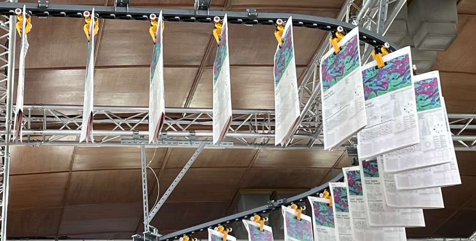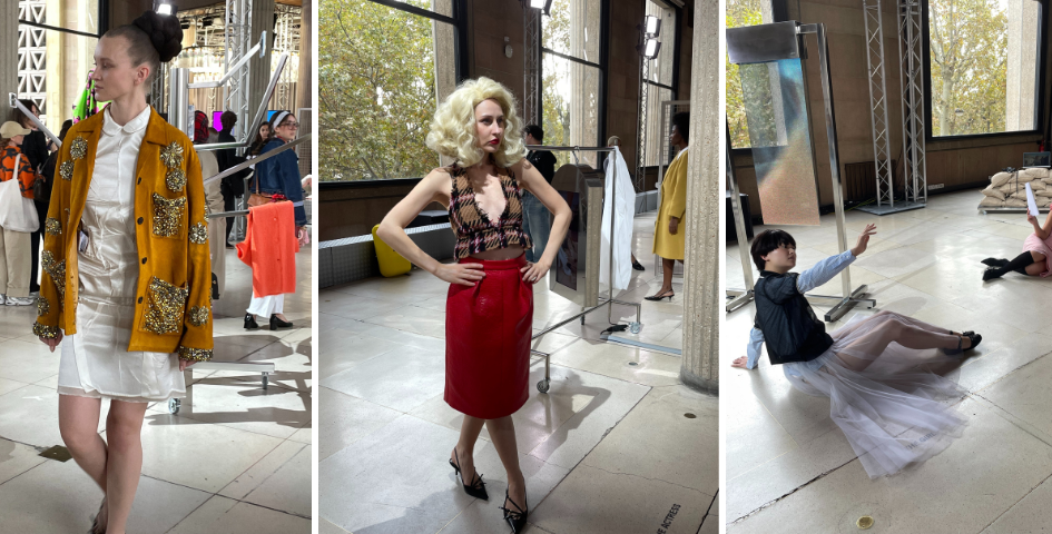 Une exhibition mettant en valeur la force de l’empowerment féminin, thème cher à Miuccia Prada qu’elle décline dans ses collections de saison en saison, qui contrastait avec l’imposante architecture en béton du bâtiment de style moderniste qui l’accueillait. Une partie du vaste espace transformé en catwalk pour le défilé Miu Miu printemps-été 2025 était investi par une mise en scène faite de journaux qui circulaient au plafond sur des rails dans une incessante ronde interrogeant sur la surinformation et sa véracité inondant notre époque.