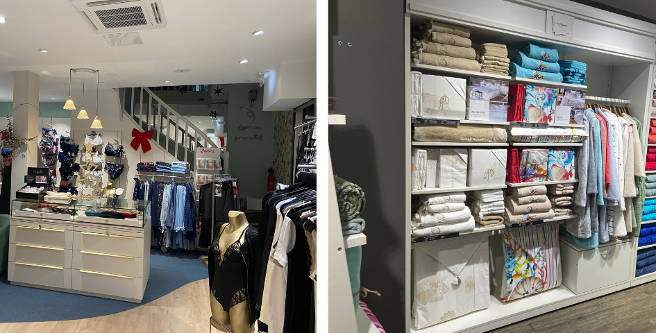 C'est dans cet esprit d'excellence et d'évolution que s'inscrit le récent rachat, en mars dernier, de la boutique Carré Blanc, faisant de Cathy la propriétaire de deux boutiques complémentaires, situées l’une en face de l’autre. Les clients auront ainsi l'opportunité de répondre à leurs divers besoins, qu'il s'agisse de lingerie, de peignoirs douillets ou de draps somptueux, le tout dans deux boutiques élégantes.