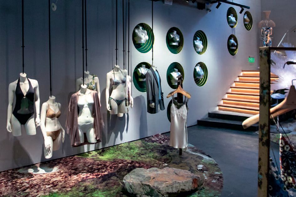 Des oeuvres d’art originales et un thème cohérant invite les clientes à découvrir l’espace et à imaginer quelles pièces de lingerie exalteraient au mieux sa morphologie...
