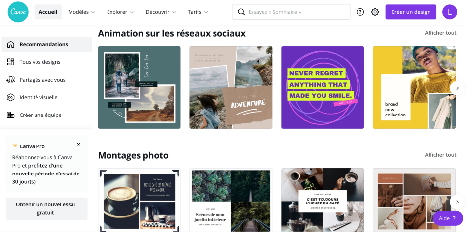 Depuis Canva, dans la barre de recherche cliquez sur Publication Facebook ou Instagram, ou tout autre suggestion de votre choix