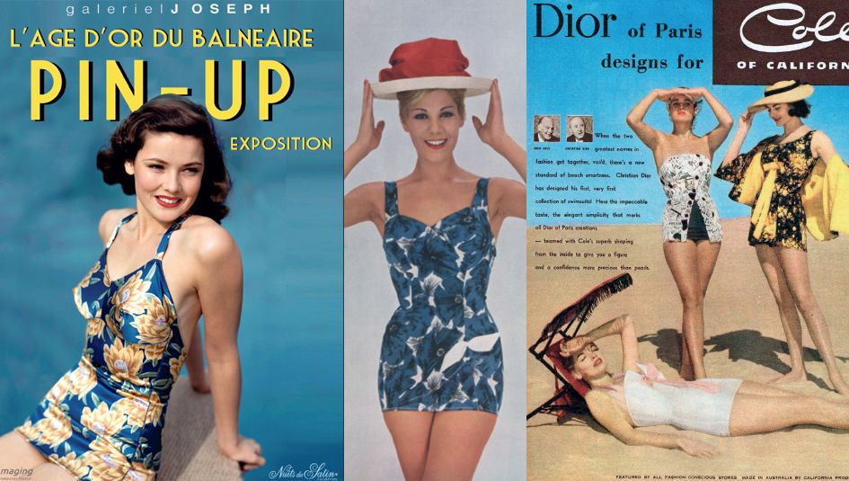 Pendant toute la période des années 50, le maillot de bain est porté soit en 2 pièces (culotte montante qui couvre le ventre et surtout le nombril) et le « une-pièce » qui permet de se déshabiller sans être impudique. Cette décennie est marquée par le développement de la créativité du maillot unepièce couture et du maillot à jupette.