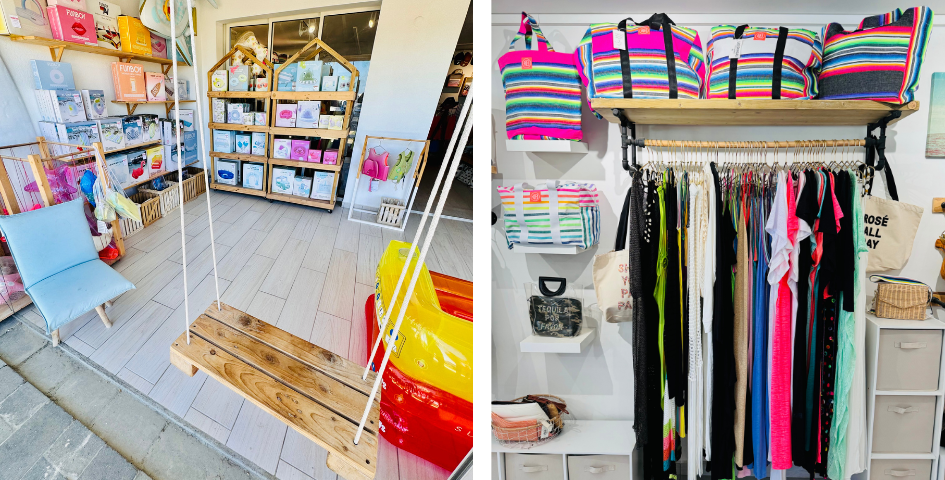 Créé en janvier 2019 par la dynamique Jennifer d'Amato, cette délicieuse boutique en bord de mer séduit dès le premier regard : à l’extérieur, bouées colorées, transats et même balançoire donnent clairement le ton et sont une invitation à entrer. Une fois la porte franchie, le client est immédiatement transporté dans un univers de couleurs vives et de bonnes vibrations. Dans cet espace d’une surface de 60 m², le mobilier a été entièrement fabriqué à la main à partir de palettes en bois – et avec une touche de plomberie américaine – qui trouvent ainsi une seconde vie pour accueillir les collections.