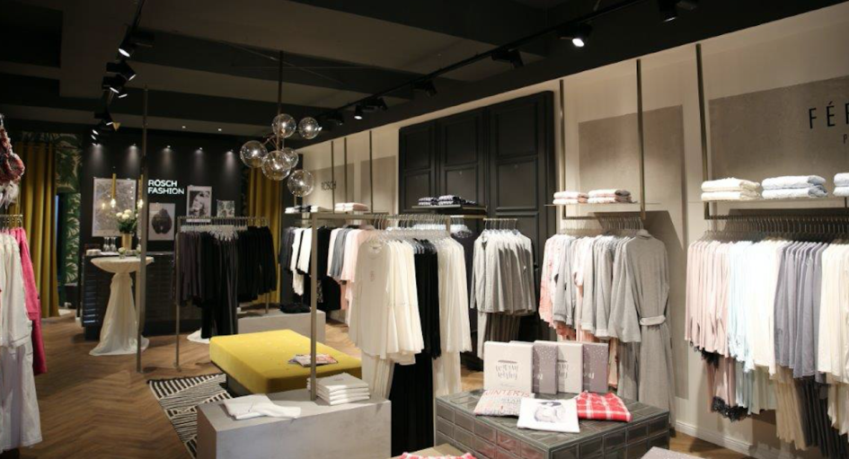 Dans un cadre sobre et agréable, cet espace de près de 70m2 propose les collections des trois marques du groupe – Rösch, Féraud et la pétillante Bee Happy – pour une vaste gamme de lingerie de nuit, loungewear et balnéaire, mais aussi de robes de chambre et peignoirs. La naissance de ce premier point de vente vient appuyer la nouvelle stratégie de collection du groupe à compter de l’A/H 2018-19, qui dévoile une segmentation entièrement revue de ses marques Rösch et Féraud. Pour Rösch, on retrouve désormais 4 segments : Rösch Pure, un style épuré et moderne avec un concept de mix&match ; Rösch Smart Casual, des silhouettes sporty et intemporelles ; Rösch New Romance, une offre romantique féminine et fraîche ; Rösch Curve, une nouvelle ligne dédiée aux grandes tailles (voir notre article C’est nouveau dans ce numéro). La marque Féraud se décline désormais, elle aussi, en 4 segments : Féraud Couture, une proposition luxe et exclusive dans le plus pur esprit des Couturiers Lousi Féraud ; Féraud High Class, un segment élégant avec des imprimés raffinés ; Féraud Casual Chic, des looks contemporains avec un esprit mix&match ; enfin, Féraud Voyage (voir notre article C’est nouveau dans ce numéro), nouveau concept de dressing loungewear, nightwear et bain coordonné et pratique, pensé pour les déplacements.