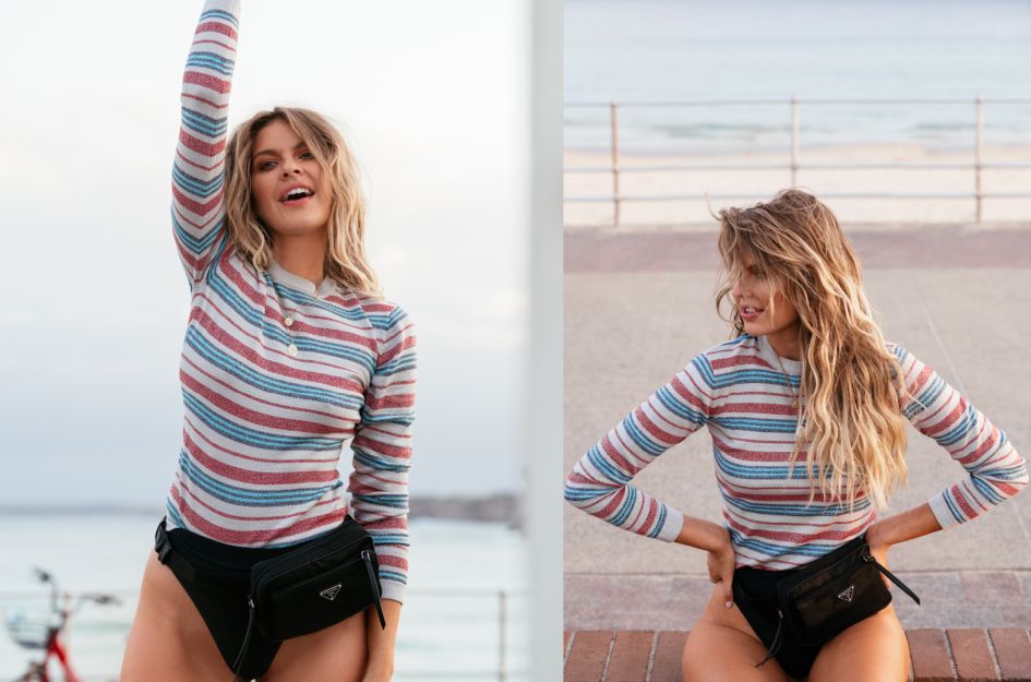 La collaboration est le fruit d’une longue relation avec Elle, de la première rencontre sur la côte nord d’Hawaii il y a quelques années au lancement aujourd’hui de sa première collaboration textile shootée chez elle à Bondi Beach