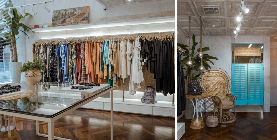 Créée en 2010, la marque de mode plage, née de l’imaginaire de la styliste Patiara Aguiar, est reconnue pour ses collections à la fois créatives et confortables, inspirées par une femme amoureuse de la nature, de la plage et des voyages. Coupes asymétriques, imprimés originaux et mélange de textures – cela sans perdre de vue le côté sensuel, indissociable du beachwear brésilien – ont permis à Borana de conquérir le cœur des Brésiliennes et d’accéder aux podiums de la São Paulo Fashion Week. En juin 2017, une boutique à l’enseigne a pris ses marques en bord de mer, au sein du Shopping Vila Velha. Conçu par le Studio Annex A, cet espace de 60 m2 a été pensé dans les moindres détails pour plonger le client dans une ambiance tropicale chic. ♥ On aime ce concept très actuel qui mêle avec brio le rustique à la modernité. Les murs habillés de briques en travertin s’harmonisent à un éclairage subtil, derrière des panneaux à texture paillée, qui dirige le regard des clients sur les modèles exposés. Plafond à l’aspect vieilli, mobilier en bois naturel, parquet à bâtons rompus complètent ce décor à l’esthétique « cocoon » qui ne manque pas de susciter l’émotion. Délimité par une porte battante de style saloon, la zone essayage comprend 4 cabines confortables, dans lesquelles l’association d’une lumière indirecte et de miroirs stratégiquement inclinés évite les ombres indésirables pour valoriser les courbes des Brésiliennes ! Notons que Borana possède actuellement trois boutiques en propre au Brésil et que la marque est distribuée en France, en Espagne, au Portugal, au Japon et en Australie. Parmi les projets, l’ouverture d’une boutique à Rio de Janeiro ainsi qu’au Portugal.