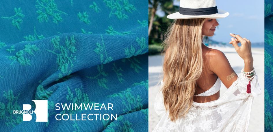 Tissus brillants, toucher soyeux, mais surtout toute une palette de nouveaux coloris riches et vibrants, sont les mots-clés de la nouvelle collection Swimwear Brugnoli. Grâce au savant mélange de nouveaux fils, aussi pré-teints, Brugnoli propose de nombreuses fantaisies, aussi en version mat/brillant.