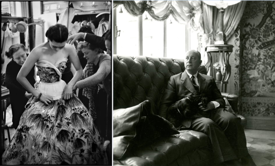 Photo de droite: Christian Dior dans son appartement du 7, boulevard Jules‑Sandeau à Paris, vers 1950. © Christian Dior