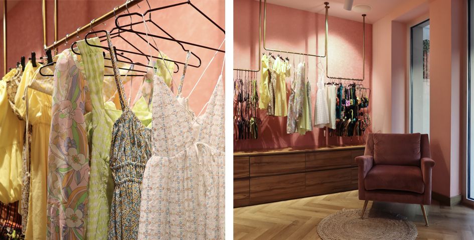 On aime le coloris doux et rosé de la boutique, son emplacement singulier et dépaysant au cœur d'un hôtel de luxe.