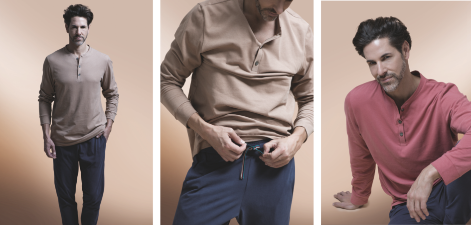 Avec le bien-être comme leitmotiv, cette ligne se caractérise par la douceur de son colorama – marine, camel, rouille et flanelle – et de ses matières – coton et modal micro-sablé – pour une allure à la fois chic et cocoon. Ni trop larges, ni trop prêt du corps les coupes sont « comme il faut ». Slips, boxers et modèles loungewear à l’esprit cosy raviront ceux qui ont décidé de prendre le temps de bien vivre les moments à la maison.