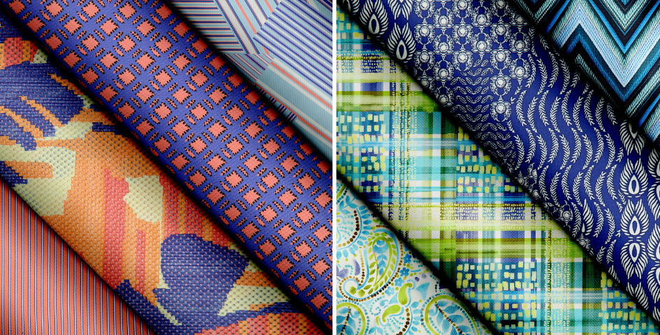 Les atouts techniques – protection SPF 50+, séchage rapide, transpirabilité – sont exaltés par l’expertise Eurojersey dans l’impression digitale haute définition, pour un rendu 3D saisissant, illustré dans les 3 thèmes de l’été 2027 : Pool Party, un plongeon dans l’atmosphère de Miami, entre géométries et floraux colorés ; Retro Riviera, l’élégance inspirée de la céramique italienne ; Sunset Vibes, l’ethnique et l’animalier un brin graphique. Pertinent, le choix de poids (de 80g/m2 à 300g/m2) permet toutes les créations, des maillots techniques à la mode plage aérienne… sous un angle total look.