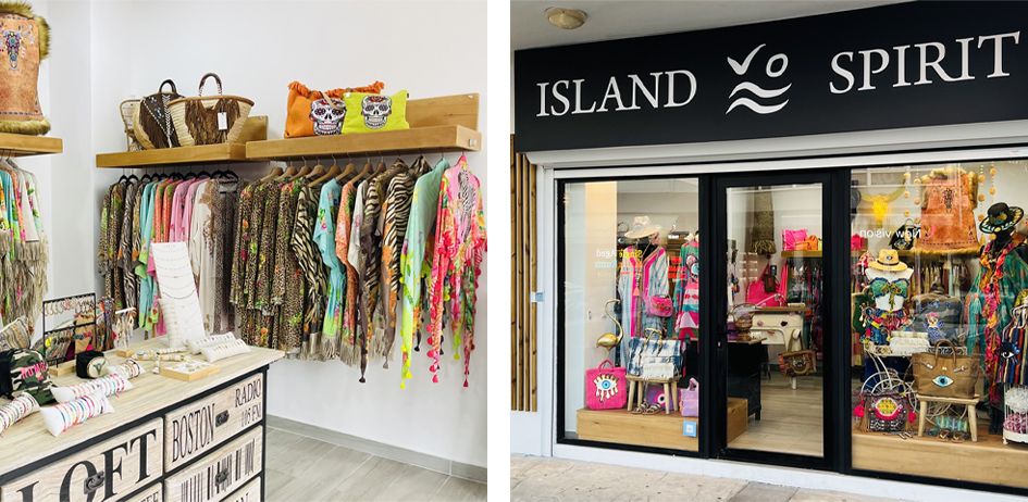 Cet univers plage-bohème très coloré, évoque la Californie du Sud, une région que Charlotte connaît bien. La vitrine noire et l'enseigne blanche attirent les regards, donnant un avant-goût du monde chaleureux et accueillant que l'on retrouve à l'intérieur. Island Spirit propose une large sélection de vêtements de plage, ainsi que des sacs, des chapeaux et de charmants bijoux. Les clientes fidèles bénéficient d'une réduction de 10 %, une manière pour la propriétaire de les remercier de leur confiance.
