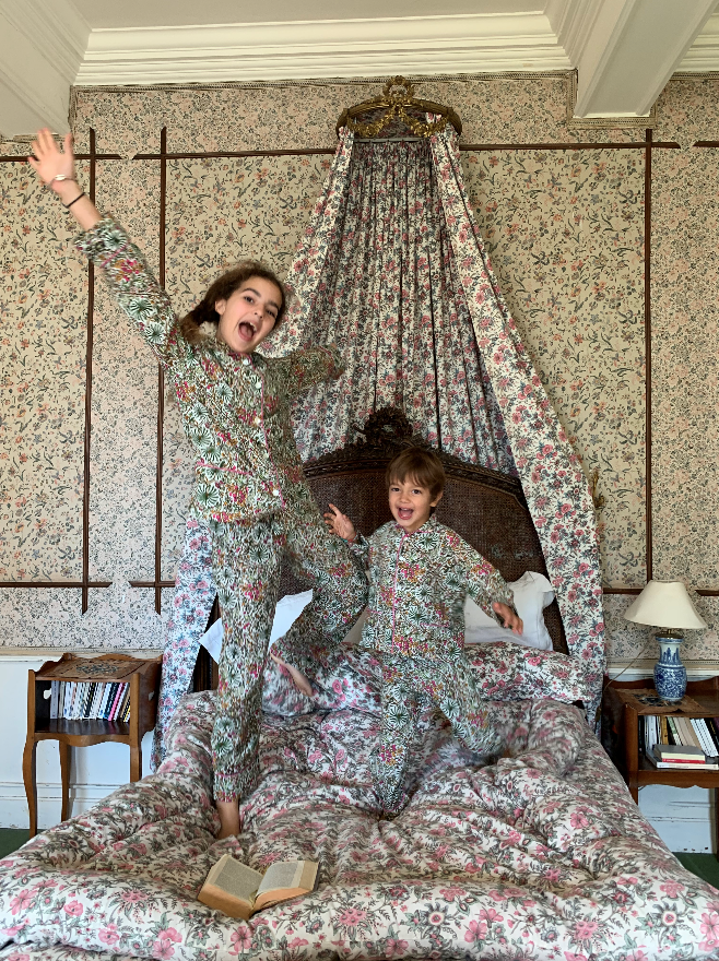 Le désir de Jeanne était surtout de proposer les mêmes imprimés à tous les membres de la famille pour un look coordonné à la table du petit déjeuner ou au dîner. En 2019, elle donne donc vie à Holi Holi : un jeu de mot en français (« au lit »), mais aussi un nom qui fait référence à une grande fête des couleurs en Inde, pays dans lequel la créatrice a eu l’idée de la marque et fait fabriquer ses collections. Rentrer chez soi, quitter ses vêtements de la journée et enfiler une tenue confortable mais stylée, c’est la clé pour un cocooning chic et c’est justement ce que propose Holi Holi avec une ligne de « costumes de nuit », à michemin entre le vêtement d’intérieur et le pyjama, pour se sentir bien à la maison. Fabriqués dans les matières les plus douces possibles – coton fin et soie lavée –, les modèles sont légers et confortables, s’affichant avec des coupes classiques pour homme, femme, enfant et bébé. De la rayure chic et intemporelle à l’imprimé flashy à fort impact visuel, les motifs répondent à toutes les envies de style et les collections mettent toujours la couleur à l’honneur. « J’ai eu la chance d’essayer des crèmes de nuit et des masques aux promesses épatantes pendant 10 ans mais il n’y a rien à faire, un tissu coloré près du visage, c’est le meilleure remède bonne mine au réveil ! » s’enthousiasme Jeanne.