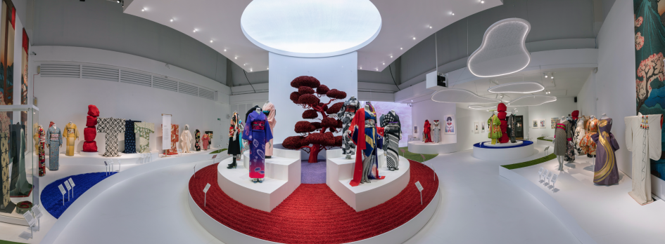 Parmi les 315 modèles exposés de rares exemplaires de kimono datant du 17ème et du 18ème siècle viennent côtoyer des créations signées de grands designers ainsi que des costumes réalisés pour des films emblématiques et autres performances artistiques. La réinterprétation du kimono dans les rues du Japon est une piste qui a été également explorée ici au travers du fabuleux travail d’une nouvelle vague de designers et stylistes contemporains. Peintures, impressions, films, accessoires vestimentaires et une foule d’autres objets ont été présentés dans les différentes salles de l’exposition afin de fournir un ultérieur contexte à l’histoire fascinante, le style, l’attrait et l’influence du kimono.