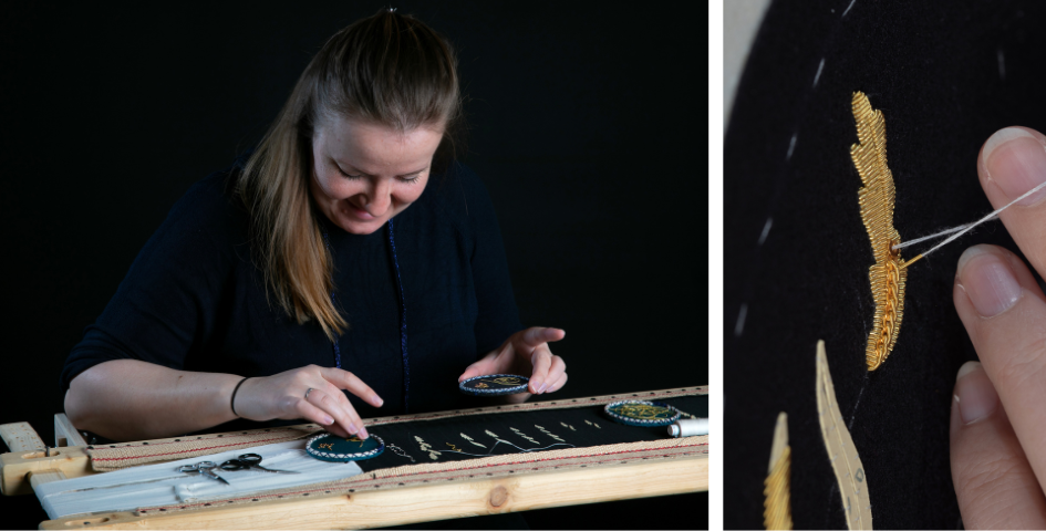 « Je réponds aussi à des commandes spécifiques de la Maison des Grenadières, comme par exemple pour broder un tambour qui sera exposé afin d’illustrer les différentes méthodes de broderies. C’est un exercice très intéressant, car cela me permet de me perfectionner dans les différentes techniques ». Elle donne également des cours d’initiation au musée pour former et sensibiliser le grand public, car c’est devenu un rêve pour la brodeuse de transmettre au plus grand nombre son savoir-faire d’orfèvre et en particulier auprès des plus jeunes.