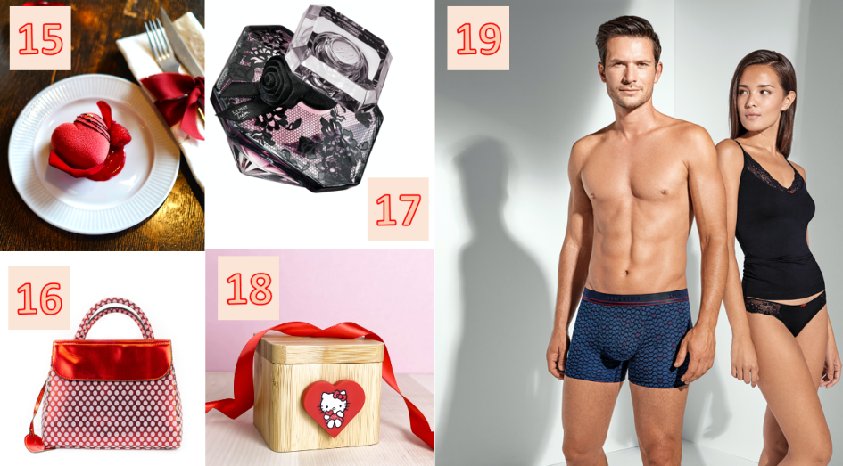 19. Boxer à motifs cœur pour lui, slip et top agrémentés d’un nœud rouge et dentelle pour elle, Impetus