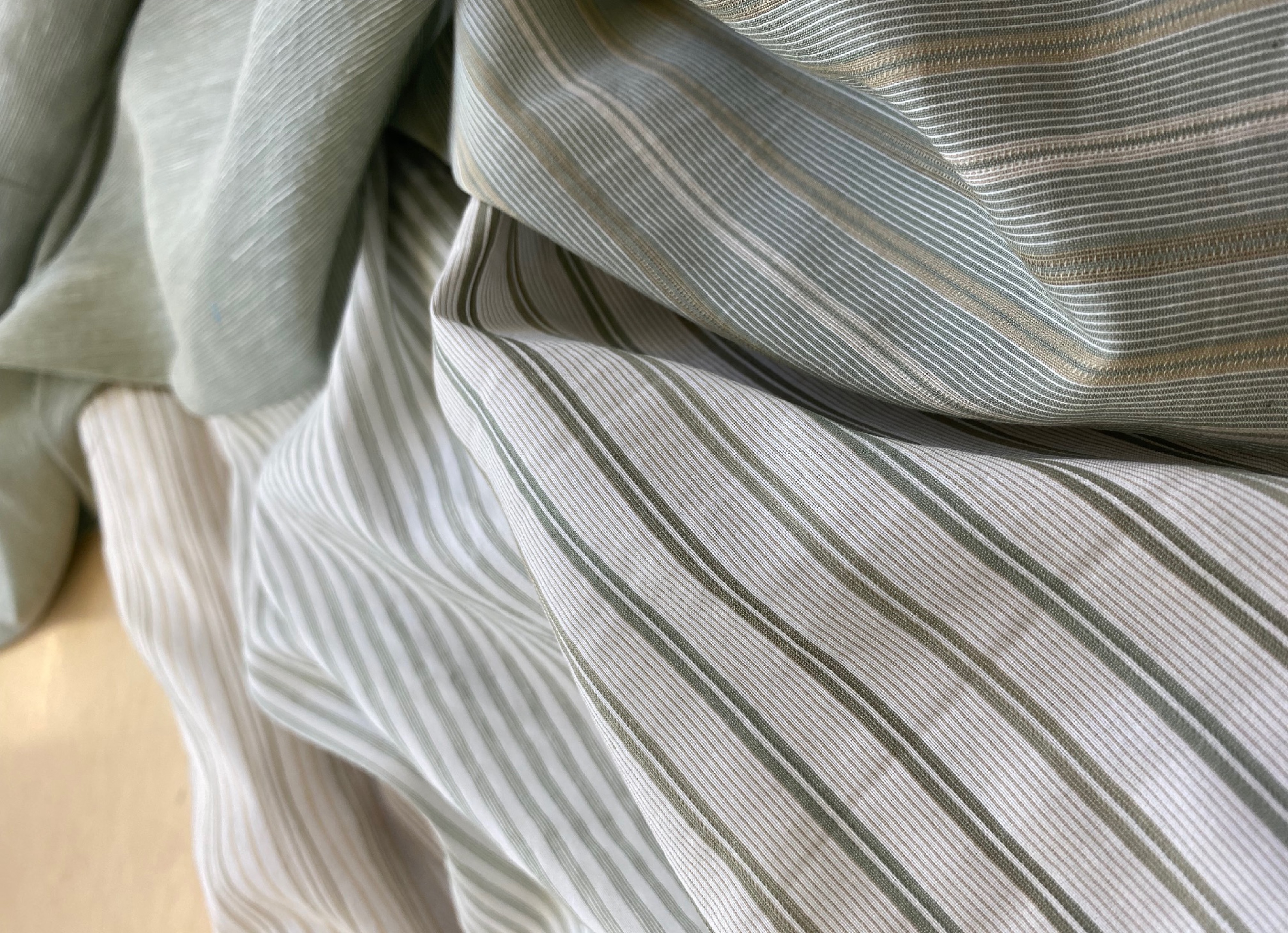 Pour le P/E 2026 arrive une offre de tissus en soie mélangée pour un homewear confortable et un prêt-à-porter de plage chic : aux rayures fraîches et sophistiquées, teints en fil en soie-viscose, soie-coton ou soie-lin, ils embrassent tous les goûts, des aspects lisses aux seersuckers.