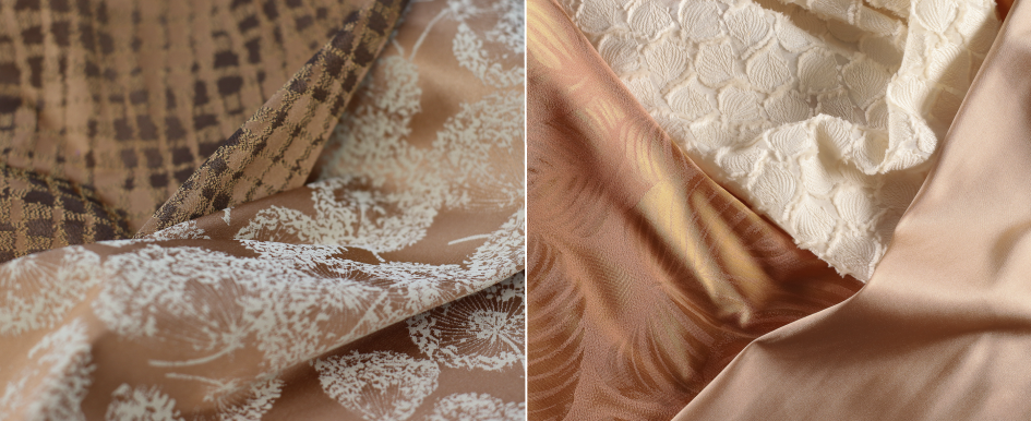 Expert des plus belles soies, dans des poids et des élasticités variés, Les Tissages Perrin proposent aussi une large gamme de bases polyamides. Mousseline, satin, gaze, crêpe, taffetas, georgette, twill, « seconde peau » … : les étoffes des Tissage Perrin sont de toutes les textures et de tous les usages : ils se prêtent ainsi tout autant à la lingerie qu’aux sports doux, au balnéaire ou aux vêtements de plage. Les Tissages Perrin enrichissent leurs propositions en élaborant des collections qui suivent les nouvelles tendances des saisons ou répondent aux demandes spécifiques de leurs clients.