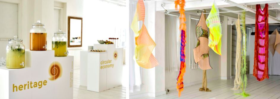 Le film de Cristina Picchi a présenté l’harmonie entre les phases du processus textile et les cycles naturels. Pièce maîtresse, une installation tridimen sionnelle conçue par Cécile Feilchenfeldt : en marchant entre les sculptures, réalisées avec des matériaux C.L.A.S.S., les invités ont pu recueillir des sources d’inspirations et exploré les infinies possibilités offertes par les matériaux « smart ». Ils ont pu aussi toucher quelques exemples de textiles intelligents, fruit d’une innovation responsable : Bacx by Centro Seta, Bemberg by Asahi Kasei, Ecotec by Marchi & Fildi, Organic Cotton Colours, Re.VerSo, Roica by Asahi Kasei, Tintex Textiles et Zignone.