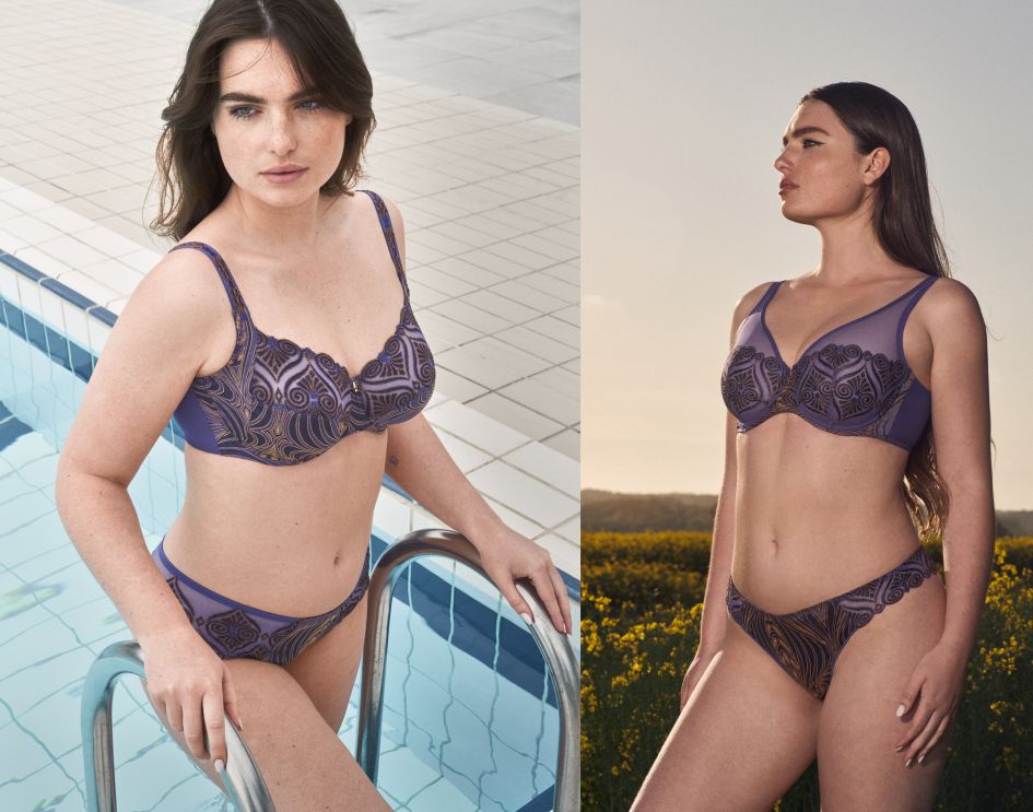 Plongez dans l'univers envoûtant de notre nouvelle ligne HERMIONE, qui évoque une ambiance romantique, art déco et sophistiquée. Inspirée par le personnage féminin d'Hermione dans le célèbre film Harry Potter, cette ligne fusionne de manière audacieuse la broderie art déco et le jacquard exclusivement créé pour la marque Louisa Bracq par le tisseur français Les Tissages Perrin, dans des teintes violettes et dorées. Elle vous propose une variété de soutiens-gorge avec quatre formes différentes : emboitant, push-up, sans armature et foulard. Disponible du bonnet B au bonnet I, cette ligne allie charme, style et magie.