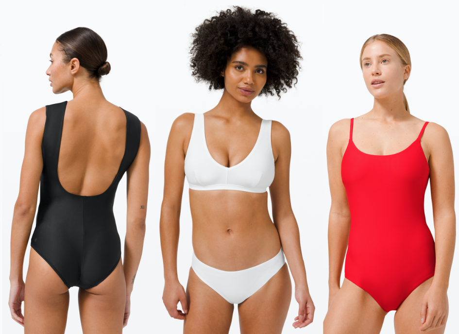 Plusieurs modèles viendront satisfaire tous les styles : un modèle une-pièce classique avec des bretelles fines réglables et un dos plongeant (disponible en 4 coloris, à savoir noir, rouge, blanc et bleu) ; un maillot une pièce à col montant et à dos plongeant pour se sentir un peu plus couverte ; Un bas de maillot de bain taille haute à associer, au choix, à un haut de maillot forme triangle à bonnet intégrés qui offre forme et couvrance ou bien à une forme top en V confortable tant pour nager que pour prendre le soleil.