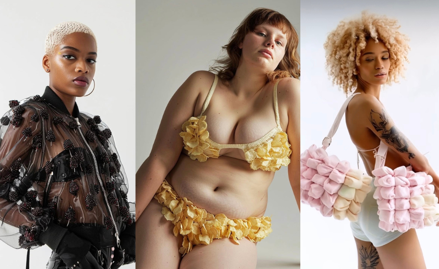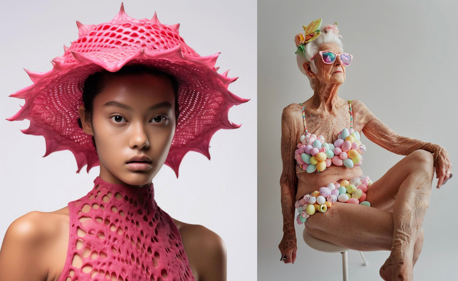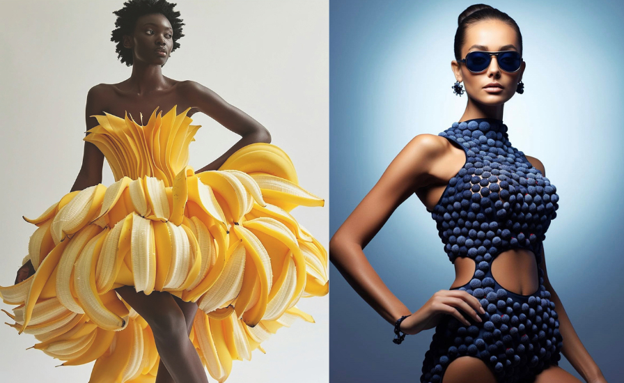 La série « Food Fashion » illustre à merveille cette approche, transformant des aliments en tenues spectaculaires : robe de soirée en bananes pelées, maillot de bain en myrtilles, lingerie en œufs en sucre, veste en framboises et crème fouettée… En détournant la nature par la technologie, Bonny Carrera invente une mode inédite. « La nature est une source d’inspiration infinie. L’IA m’aide à en extraire des formes abstraites et à les traduire en silhouettes inédites », explique-t-il.