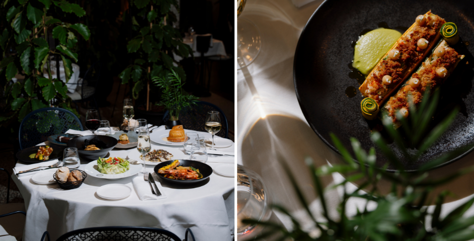 La carte, imaginée par le Chef Tony Goncalves, célèbre les produits bruts dans un équilibre subtil entre végétal, terre et mer. Tartare de bœuf au tagète, mijoté de coques et moules aux poireaux ou risotto d’épeautre aux abricots et figues se côtoient harmonieusement, tandis que les desserts de la Cheffe pâtissière Camilla D’Ambrosio apportent douceur et réconfort.