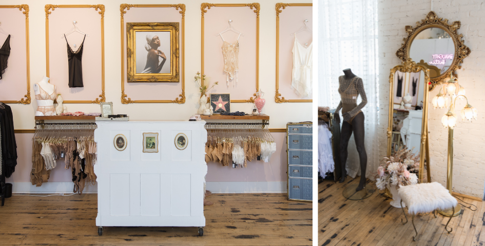 Chez Naughty Bettie, la lingerie est présentée de manière inédite, encadrée tel un tableau… et cela n’a rien d’étonnant ! Il y a dix ans, Élise Kutt créait Mod Bettie, son studio de portraits photo, afin d’encourager, à travers la photographie, « l’empowerment » des femmes de tout âge et de toute morphologie et de les accompagner dans le rapport qu’elles entretiennent avec leur image. « Dans une société qui nous met constamment un appareil photo entre les mains, mais qui dénigre facilement le selfie, notre mission est d'émanciper les femmes en créant un environnement favorable à l'expression féminine » explique Élise qui avait remarqué un fait récurrent lors de ses séances photos boudoir : les clientes qui posaient dans une lingerie qui ne leur seyait pas – souvent achetée en ligne ou sans aucun conseil à l’essayage – étaient non seulement mal à l’aise durant le shooting, mais également insatisfaites du résultat. Cela a incité Élise à ouvrir, avec Michelle Krick, Naughty Bettie : une boutique imaginée avec le même esprit que sa grande sœur, Mod Bettie, et qui propose une lingerie sélectionnée pour embellir toutes les silhouettes.