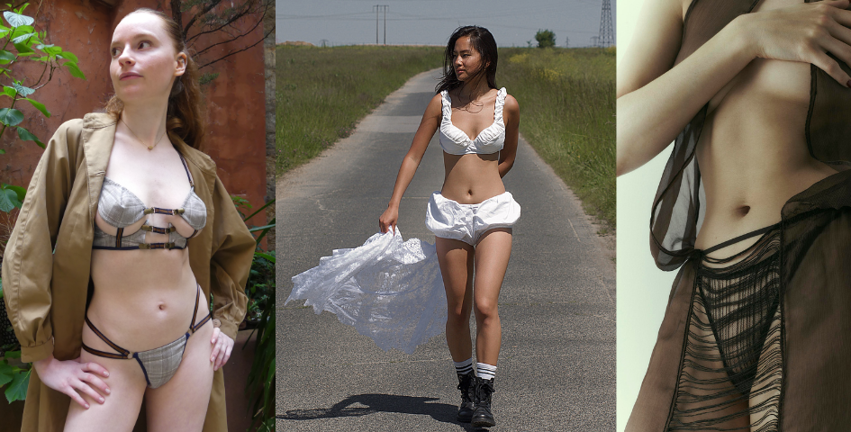 Parmi les futurs diplômés du cursus Fashion Design Lingerie de l’école Esmod Paris, il y a quelques inconditionnels du coton. Caroline Ehrngren, qui a grandi à Stockholm, propose la création d’une marque, nommée « Lost », axée sur la slow-fashion et l’upcycling, qui donne une seconde vie à des nappes, mouchoirs et autres textiles maison pour réaliser des pièces de corseterie. Pour elle, « l’appel au ralentissement n’est pas simplement une question de durabilité, c’est un encouragement à repenser notre rapport au vêtement » et le coton fait partie intégrante de la réflexion. Yvonne Johnson, Directrice principale du développement de produits chez Cotton Incorporated va dans le même sens en disant que « le récit naturel du coton parle de durabilité. Le coton, dans sa forme naturelle de couleur crème, est magnifique et ne nécessite pas de teinture pour être esthétique. ». Ainsi Caroline, la jeune diplômée d’Esmod, avait volontairement laissé le jaunissement, marque du temps, sur ses matières créant des camaïeux subtils de blancs sur ses produits, qui selon elle, font partie intégrante du charme du coton. En parallèle, elle a exploré un style très créatif en développant des soutiens-gorges armaturés en chaîne et trame 100 % coton avec ou sans paddings, qui apportent une nouvelle vision de la sexiness, plus douce composée de découpes audacieuses qui attirent le regard sur des zones érotiques, osées et inattendues.