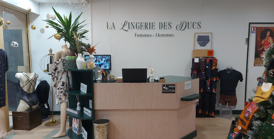 Située en plein centre-ville, dans une rue commerçante animée, La Lingerie des Ducs bénéficie d’un emplacement privilégié. Derrière sa vitrine élégante, un espace de 100 m² s’offre aux clients, pensé pour conjuguer modernité et tradition. Lindsay insuffle progressivement sa touche personnelle, réinventant la décoration au gré de ses inspirations. L’ambiance est intime et accueillante, fidèle à l’ADN du lieu, tout en y intégrant une énergie nouvelle.