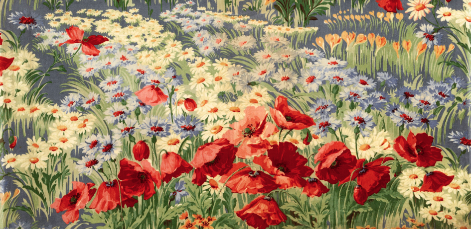 Échantillon pour ameublement, motif champ de fleurs Alsace, manufacture